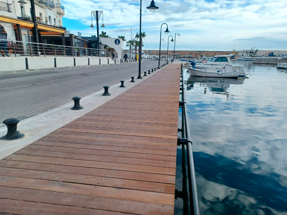 La passarel·la de fusta té un ús elevat tant per la quantitat de vianants que hi circulen com per l’activitat de les embarcacions que s’amarren al moll adossat. El pas del temps i els episodis de pluja intensos que han provocat l’arribada de riuades del barranc que hi ha a la zona, han anat deteriorant la part de l’estructura de suport de la passarel·la de fusta en dos trams, que ara s’han reparat. El primer tram va de la plaça del Canó al Centre de la Pesca i el segon tram va de la plaça del Canó al varador.